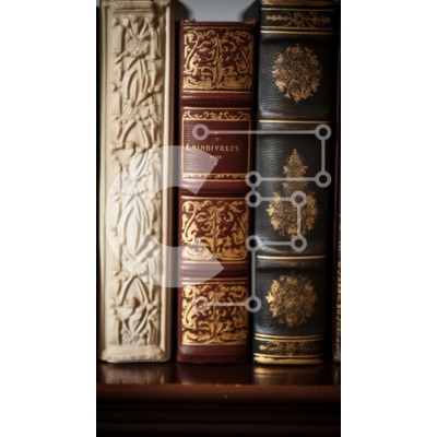 Υπάρχει δυνατότητα προσωποποίησης με δική σας φωτογραφία και προσαρμογής διαστάσεων κατόπιν παραγγελίας. Το συγεκεριμενο puzzle παρουσιαζει Αυτή η εικόνα παρουσιάζει μια συλλογή βιβλίων αντίκες τοποθετημένα σε ένα ράφι. Τα βιβλία διαθέτουν περίτεχνες, επιχρυσωμένες ράχες σε πλούσιο μπορντό και μαύρο δέρμα. Το πιο αριστερό βιβλίο έχει σχέδιο με λουλουδάτο μοτίβο, ενώ το κεντρικό βιβλίο εμφανίζει περίπλοκες χρυσές λ