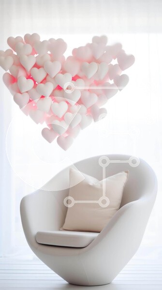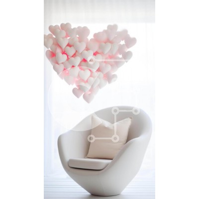 Υπάρχει δυνατότητα προσωποποίησης με δική σας φωτογραφία και προσαρμογής διαστάσεων κατόπιν παραγγελίας. Το συγεκεριμενο puzzle παρουσιαζει Αυτή η εικόνα παρουσιάζει μια λευκή καρέκλα σε ένα δωμάτιο, πλαισιωμένη από διακοσμήσεις σε σχήμα καρδιάς που κρέμονται από την οροφή. Αυτά τα διακοσμητικά αποτελούν μέρος μιας περίτεχνης επίδειξης για την Ημέρα του Αγίου Βαλεντίνου, δημιουργώντας μια ρομαντική και αγαπησιάρικ