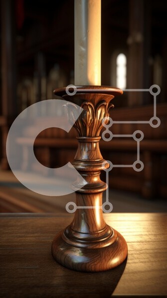 Υπάρχει δυνατότητα προσωποποίησης με δική σας φωτογραφία και προσαρμογής διαστάσεων κατόπιν παραγγελίας. Το συγεκεριμενο puzzle παρουσιαζει Αυτή η εικόνα δείχνει ένα όμορφα φτιαγμένο ξύλινο κηροπήγιο που κρατά ένα αναμμένο κερί. Το κηροπήγιο έχει περίπλοκες λεπτομέρειες, με περίτεχνα σκαλίσματα που αναδεικνύουν τη δεξιοτεχνία του. Στέκεται σε ένα γυαλισμένο ξύλινο τραπέζι και το ζεστό φως από το κερί δημιουργεί μι