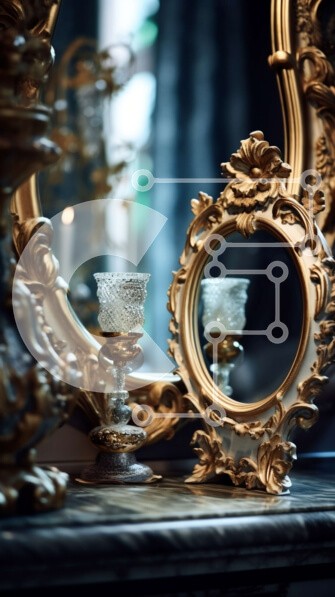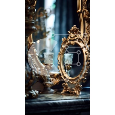 Υπάρχει δυνατότητα προσωποποίησης με δική σας φωτογραφία και προσαρμογής διαστάσεων κατόπιν παραγγελίας. Το συγεκεριμενο puzzle παρουσιαζει Αυτή η εικόνα παρουσιάζει έναν καθρέφτη με χρυσό πλαίσιο με περίτεχνα σκαλίσματα που κάθεται σε ένα τραπέζι σε ένα δωμάτιο με χαμηλό φωτισμό. Ένα μόνο κερί στο τραπέζι ρίχνει σκιές που τρεμοπαίζουν στον τοίχο, φωτίζοντας την ομορφιά του καθρέφτη. Το δωμάτιο είναι άδειο εκτός α