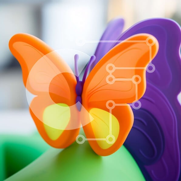 Υπάρχει δυνατότητα προσωποποίησης με δική σας φωτογραφία και προσαρμογής διαστάσεων κατόπιν παραγγελίας. Το συγεκεριμενο puzzle παρουσιαζει Αυτή η εικόνα παρουσιάζει μια συλλογή από πεταλούδες παιχνιδιών που τοποθετούνται πάνω από ένα πορτοκαλί, μοβ και πράσινο κομμάτι πλαστικού. Οι πεταλούδες ποικίλλουν σε χρώμα και σχέδιο, με μερικές να εμφανίζονται πιο ζωντανές και ιδιότροπες από άλλες. Η σκηνή αποτυπώνει μια π
