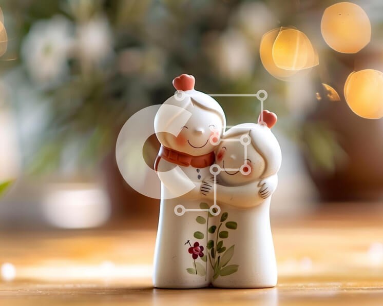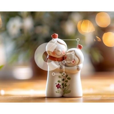 Υπάρχει δυνατότητα προσωποποίησης με δική σας φωτογραφία και προσαρμογής διαστάσεων κατόπιν παραγγελίας. Το συγεκεριμενο puzzle παρουσιαζει Αυτή η εικόνα παρουσιάζει δύο ειδώλια αγκαλιασμένα σε ένα ξύλινο τραπέζι, με φυτά και λουλούδια στο βάθος. Η σκηνή αποπνέει μια συγκινητική αίσθηση και υποδηλώνει έναν ισχυρό δεσμό μεταξύ των ειδωλίων. Ένα μοναδικό puzzle που συνδυάζει ποιότητα, αισθητική και εμπειρία. Υλικό