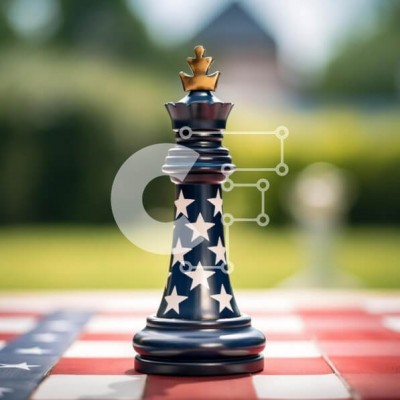 Υπάρχει δυνατότητα προσωποποίησης με δική σας φωτογραφία και προσαρμογής διαστάσεων κατόπιν παραγγελίας. Το συγεκεριμενο puzzle παρουσιαζει Η εικόνα δείχνει ένα κομμάτι σκακιού τοποθετημένο σε ένα τραπεζομάντιλο με θέμα την αμερικανική σημαία, που περιβάλλεται από κόκκινα, λευκά και μπλε τετράγωνα σκακιέρας. Δύο μαύρα πιόνια είναι επίσης ορατά στο προσκήνιο, που ενδεχομένως συμβολίζουν αντικρουόμενες πολιτικές από
