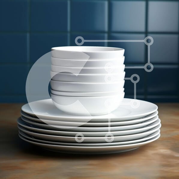 Υπάρχει δυνατότητα προσωποποίησης με δική σας φωτογραφία και προσαρμογής διαστάσεων κατόπιν παραγγελίας. Το συγεκεριμενο puzzle παρουσιαζει Αυτή η εικόνα απεικονίζει μια στοίβα από λευκά πιάτα και μπολ τοποθετημένα σε ένα ξύλινο τραπέζι. Τα πιάτα είναι τακτοποιημένα, με τα μπολ στοιβαγμένα από πάνω τους. Το τραπέζι διαθέτει μπλε πλακάκια πίσω και ξύλινη επιφάνεια, προσθέτοντας ζεστασιά στη σύνθεση. Ένα μοναδικό p