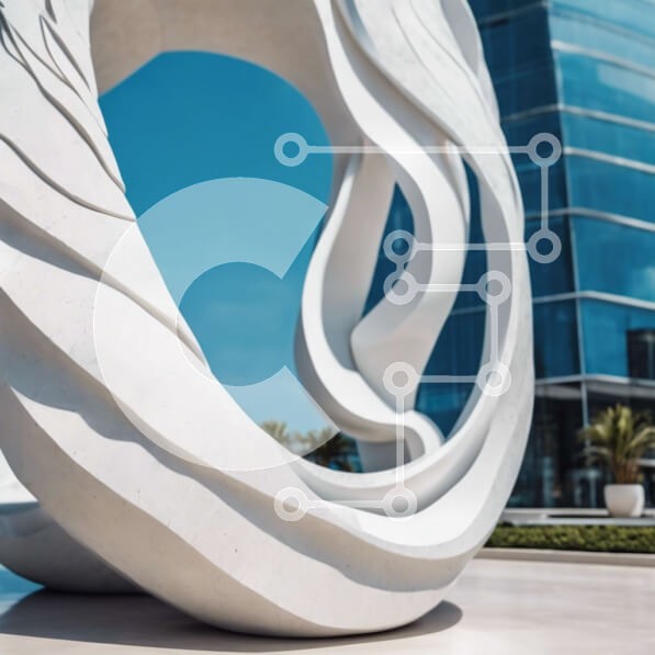 Υπάρχει δυνατότητα προσωποποίησης με δική σας φωτογραφία και προσαρμογής διαστάσεων κατόπιν παραγγελίας. Το συγεκεριμενο puzzle παρουσιαζει Η εικόνα παρουσιάζει ένα εντυπωσιακό λευκό γλυπτό με ρέουσες, οργανικές γραμμές που δημιουργούν μια αίσθηση κίνησης και ρευστότητας. Στέκεται με φόντο ένα μοντέρνο γυάλινο κτίριο και έναν καταγάλανο ουρανό, δίνοντας στη σκηνή μια σύγχρονη και καλλιτεχνική ατμόσφαιρα. Η λεία επ