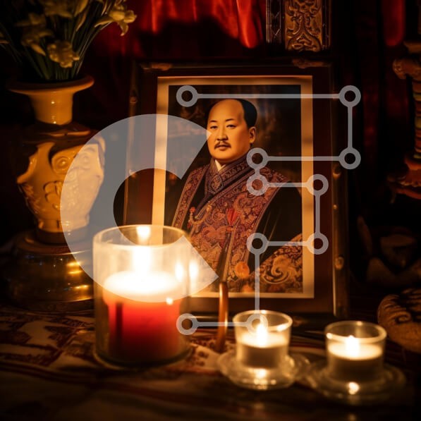 Υπάρχει δυνατότητα προσωποποίησης με δική σας φωτογραφία και προσαρμογής διαστάσεων κατόπιν παραγγελίας. Το συγεκεριμενο puzzle παρουσιαζει Αυτή η εικόνα παρουσιάζει ένα πορτρέτο ενός Ασιάτη με κορνίζα, τοποθετημένο μπροστά από δύο αναμμένα κεριά. Γύρω από το πορτρέτο υπάρχουν διάφορα αντικείμενα, όπως βάζα και κηροπήγια, δημιουργώντας μια εορταστική και εορταστική ατμόσφαιρα. Η σύνθεση αποτυπώνει τη χαρά και τη ζ