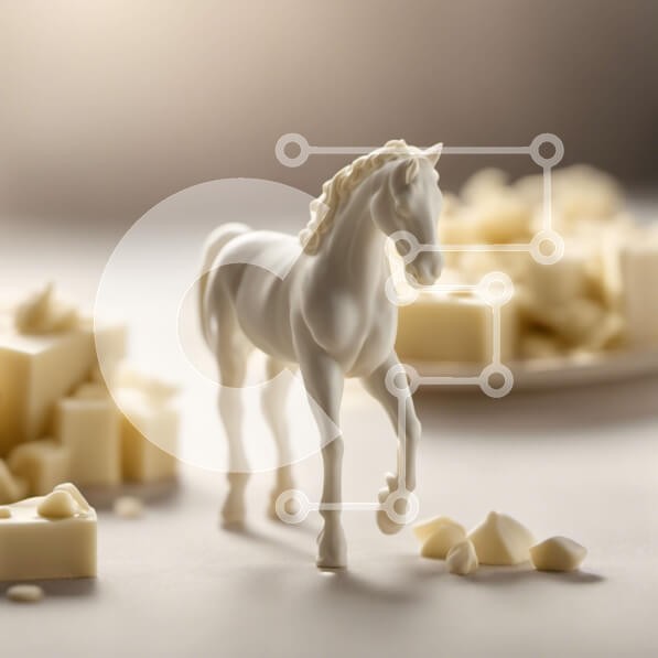 Υπάρχει δυνατότητα προσωποποίησης με δική σας φωτογραφία και προσαρμογής διαστάσεων κατόπιν παραγγελίας. Το συγεκεριμενο puzzle παρουσιαζει Αυτή η εικόνα δείχνει ένα λευκό άλογο παιχνίδι φτιαγμένο από κομμάτια λευκού τυριού. Το άλογο τοποθετείται στο κέντρο ενός τραπεζιού, που περιβάλλεται από διάσπαρτα κομμάτια τυριού. Η σπασμένη ή θρυμματισμένη όψη του τυριού υποδηλώνει ότι έχει κοπεί σε μικρότερα κομμάτια, πιθα
