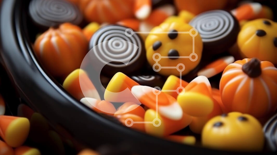 Υπάρχει δυνατότητα προσωποποίησης με δική σας φωτογραφία και προσαρμογής διαστάσεων κατόπιν παραγγελίας. Το συγεκεριμενο puzzle παρουσιαζει Αυτή η εικόνα παρουσιάζει ένα μαύρο μπολ γεμάτο με διάφορες καραμέλες, όπως κολοκύθες, κομματάκια σοκολάτας και καλαμπόκι. Είναι μια πολύχρωμη ποικιλία από γλυκές λιχουδιές σε διάφορα σχήματα και χρώματα, ιδανική για το Halloween ή οποιαδήποτε γιορτή. Το ζαχαρωτό καλαμπόκι στο