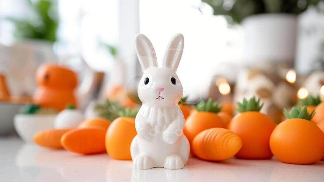 Υπάρχει δυνατότητα προσωποποίησης με δική σας φωτογραφία και προσαρμογής διαστάσεων κατόπιν παραγγελίας. Το συγεκεριμενο puzzle παρουσιαζει Αυτή η εικόνα παρουσιάζει ένα λευκό ειδώλιο κουνελιού στη μέση μιας διάταξης από πορτοκαλί καρότα. Υπάρχουν επίσης πολλά κεριά τοποθετημένα γύρω από το τραπέζι, προσθέτοντας μια ζεστή και φιλόξενη ατμόσφαιρα στη σκηνή. Άλλα αντικείμενα όπως χαρτοπετσέτες ή πιάτα μπορεί επίσης