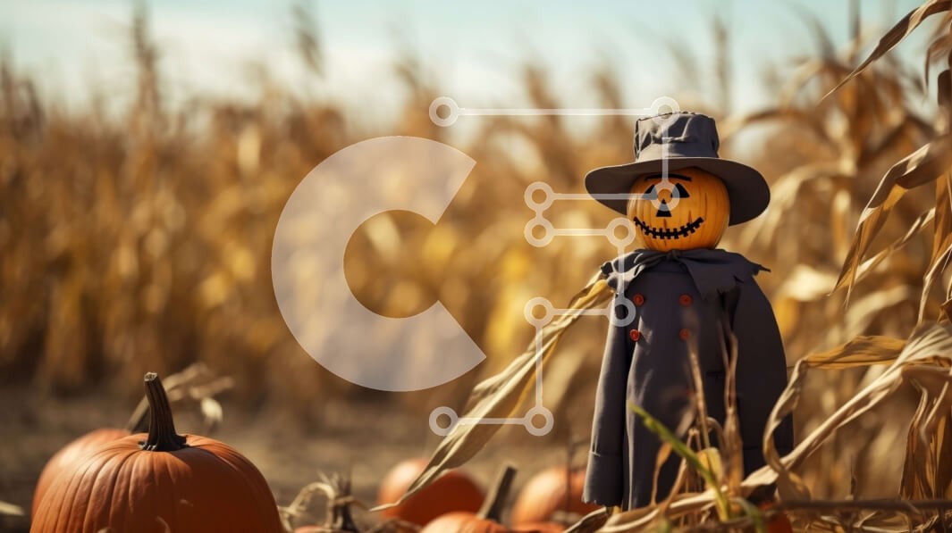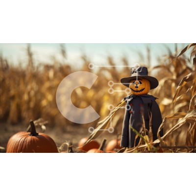 Υπάρχει δυνατότητα προσωποποίησης με δική σας φωτογραφία και προσαρμογής διαστάσεων κατόπιν παραγγελίας. Το συγεκεριμενο puzzle παρουσιαζει Αυτή η εικόνα παρουσιάζει ένα σκιάχτρο που στέκεται στη μέση ενός ανοιχτού χωραφιού με καλαμπόκι, που περιβάλλεται από κολοκύθες. Το σκηνικό πιθανότατα τοποθετείται κατά τη διάρκεια των εορτασμών του Halloween, με εορταστικές διακοσμήσεις όπως δέματα σανού και στάχυα καλαμποκι
