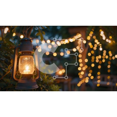 Υπάρχει δυνατότητα προσωποποίησης με δική σας φωτογραφία και προσαρμογής διαστάσεων κατόπιν παραγγελίας. Το συγεκεριμενο puzzle παρουσιαζει Η εικόνα παρουσιάζει ένα παλιομοδίτικο φανάρι που κρέμεται από ένα δέντρο στο βάθος, με φώτα να το περιβάλλουν. Το φανάρι θα μπορούσε να χρησιμοποιηθεί για να παρέχει φωτισμό σε υπαίθριες εκδηλώσεις, όπως γάμους ή άλλες γιορτές. Υπάρχουν επίσης πολλά φυτά σε γλάστρες γύρω από