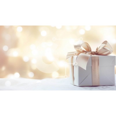 Υπάρχει δυνατότητα προσωποποίησης με δική σας φωτογραφία και προσαρμογής διαστάσεων κατόπιν παραγγελίας. Το συγεκεριμενο puzzle παρουσιαζει Αυτή η εικόνα παρουσιάζει ένα λευκό κουτί δώρου στολισμένο με μαύρες κορδέλες, τοποθετημένο πάνω από ένα όμορφα διακοσμημένο τραπέζι. Το φόντο φωτίζεται με πολύχρωμα φώτα, δημιουργώντας ένα μαγευτικό οπτικό αποτέλεσμα που προσθέτει μια επιπλέον πινελιά γοητείας σε κάθε περίστα