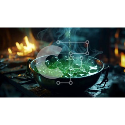 Υπάρχει δυνατότητα προσωποποίησης με δική σας φωτογραφία και προσαρμογής διαστάσεων κατόπιν παραγγελίας. Το συγεκεριμενο puzzle παρουσιαζει Αυτή η εικόνα απεικονίζει ένα καζάνι από μέταλλο γεμάτο με ένα ζωντανό πράσινο υγρό. Το υγρό αναβράζει και μικρές φυσαλίδες ανεβαίνουν στην επιφάνεια. Το φόντο είναι σκοτεινό με φλόγες που τρεμοπαίζουν, δημιουργώντας μια μυστηριώδη και μαγευτική σκηνή. Ένα μοναδικό puzzle που
