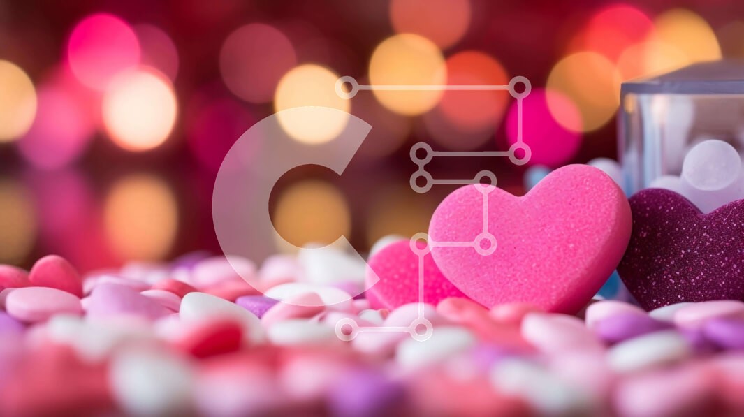 Υπάρχει δυνατότητα προσωποποίησης με δική σας φωτογραφία και προσαρμογής διαστάσεων κατόπιν παραγγελίας. Το συγεκεριμενο puzzle παρουσιαζει Αυτή η εικόνα παρουσιάζει μια ζωντανή διάταξη από καραμέλες σε σχήμα καρδιάς σε ροζ, μοβ και λευκό. Αυτές οι καραμέλες είναι ιδανικές για διακόσμηση σε ειδικές περιστάσεις όπως η Ημέρα του Αγίου Βαλεντίνου, οι γάμοι ή τα γενέθλια. Υπάρχουν πολλά μικρά δοχεία τοποθετημένα πάνω