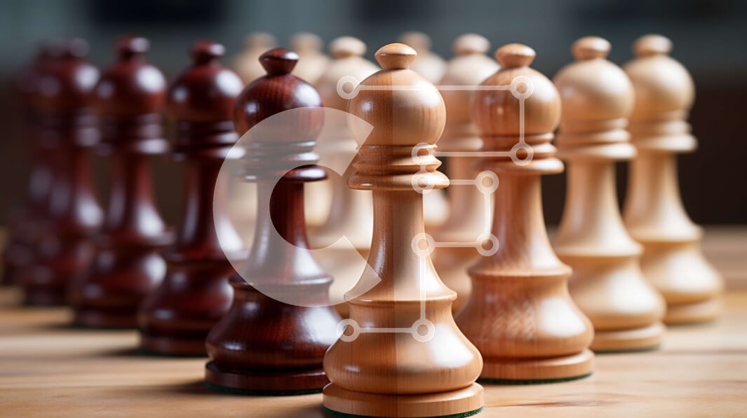 Υπάρχει δυνατότητα προσωποποίησης με δική σας φωτογραφία και προσαρμογής διαστάσεων κατόπιν παραγγελίας. Το συγεκεριμενο puzzle παρουσιαζει Αυτή η εικόνα παρουσιάζει μια ξύλινη σκακιέρα με ένα σετ ξύλινων κομματιών σκακιού τοποθετημένα πάνω της. Τα πιόνια βρίσκονται στην αρχική θέση για μια παρτίδα σκακιού, που αποτελείται από έναν βασιλιά, μια βασίλισσα, δύο πύργους, δύο ιππότες, δύο επισκόπους και οκτώ πιόνια. Κ