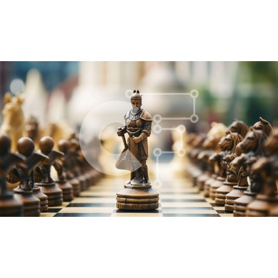 Υπάρχει δυνατότητα προσωποποίησης με δική σας φωτογραφία και προσαρμογής διαστάσεων κατόπιν παραγγελίας. Το συγεκεριμενο puzzle παρουσιαζει Αυτή η εικόνα δείχνει μια ξύλινη σκακιέρα με πολλά ξύλινα κομμάτια στο φόντο. Δύο φιγούρες στέκονται η μία δίπλα στην άλλη στον πίνακα, υποδεικνύοντας τη συμμετοχή τους σε ένα παιχνίδι ή μια δραστηριότητα. Αυτά τα ειδώλια μπορούν να χρησιμοποιηθούν ως στηρίγματα για διάφορους