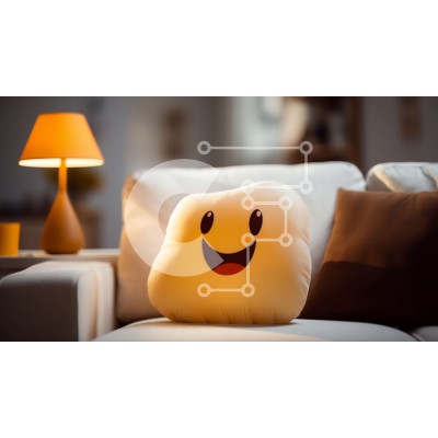 Υπάρχει δυνατότητα προσωποποίησης με δική σας φωτογραφία και προσαρμογής διαστάσεων κατόπιν παραγγελίας. Το συγεκεριμενο puzzle παρουσιαζει Αυτή η εικόνα δείχνει ένα χαμογελαστό μαξιλάρι προσώπου τοποθετημένο σε έναν λευκό καναπέ σε ένα σαλόνι. Το μαξιλάρι έχει δύο μάτια, μια μύτη και ένα στόμα, τα οποία είναι όλα χαμογελαστά. Προσθέτει μια νότα ευθυμίας στην ατμόσφαιρα του δωματίου. Ένα φωτιστικό φαίνεται σε ένα