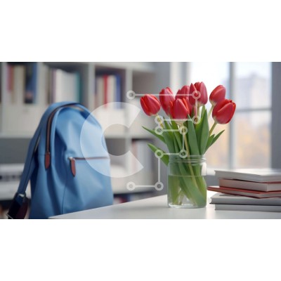 | Όνομα Προϊόντος | Intra Συλλεκτικό Ξύλινο Παζλ Plywood 4mm - Μπλε σακίδιο πλάτης, κόκκινες τουλίπες και βιβλία σε ένα τραπέζι Σε Ξύλινο Κουτί - Διαστάσεις Puzzle: 10x10 cm – 25 κομμάτια |