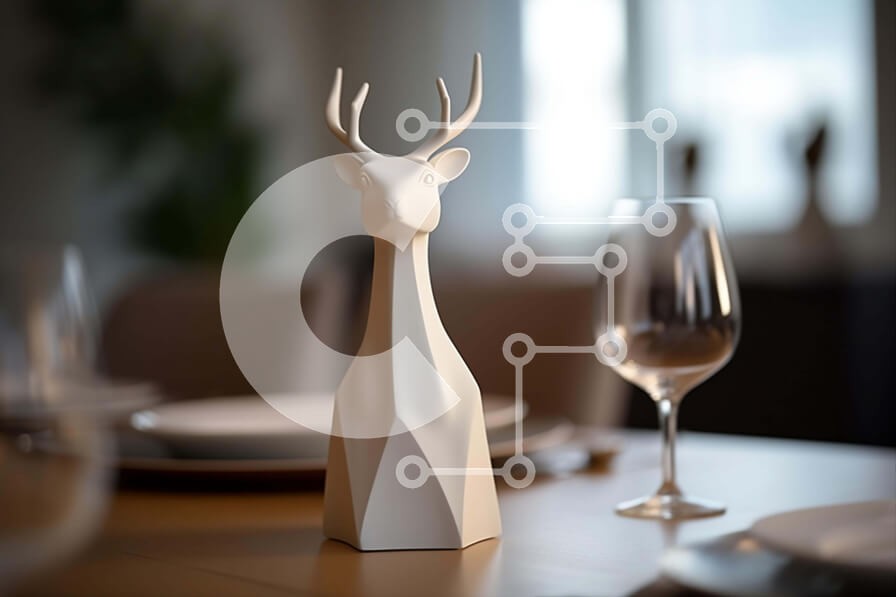 | Όνομα Προϊόντος | Intra Συλλεκτικό Ξύλινο Παζλ Plywood 4mm - Βάζο με κεφάλι από λευκό ελάφι σε τραπεζαρία με ποτήρια κρασιού Σε Ξύλινο Κουτί - Διαστάσεις Puzzle: 10x10 cm – 25 κομμάτια |