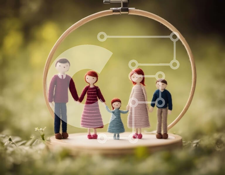 Υπάρχει δυνατότητα προσωποποίησης με δική σας φωτογραφία και προσαρμογής διαστάσεων κατόπιν παραγγελίας. Το συγεκεριμενο puzzle παρουσιαζει Αυτή η εικόνα δείχνει μια οικογένεια κούκλων που στέκονται μέσα στο πλαίσιο ενός κρίκου κεντήματος. Οι κούκλες είναι χειροποίητες και φιλοτεχνημένες με διάφορα υλικά όπως τσόχα, μαλλί και ύφασμα. Τοποθετούνται με φόντο πράσινο γρασίδι, υποδηλώνοντας τη δουλειά ενός ειδικευμένο