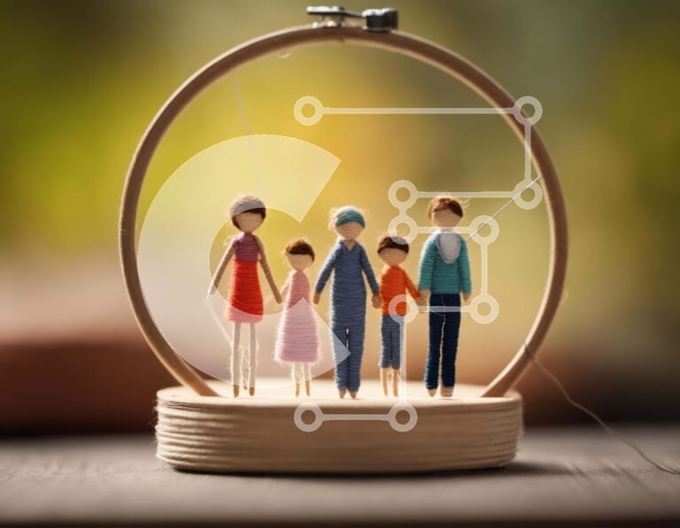 Υπάρχει δυνατότητα προσωποποίησης με δική σας φωτογραφία και προσαρμογής διαστάσεων κατόπιν παραγγελίας. Το συγεκεριμενο puzzle παρουσιαζει Αυτή η εικόνα παρουσιάζει μια οικογένεια κούκλων που στέκονται μπροστά από ένα τσέρκι κεντήματος. Οι κούκλες είναι κατασκευασμένες από χαρτί ή ύφασμα, δίνοντάς τους μια χειροποίητη εμφάνιση. Στην εικόνα απεικονίζονται δύο ενήλικες και ένα παιδί. Ένα μοναδικό puzzle που συνδυά