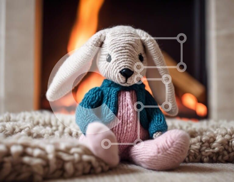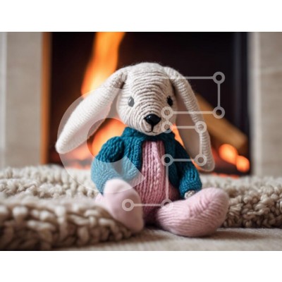 Υπάρχει δυνατότητα προσωποποίησης με δική σας φωτογραφία και προσαρμογής διαστάσεων κατόπιν παραγγελίας. Το συγεκεριμενο puzzle παρουσιαζει Αυτή η εικόνα παρουσιάζει ένα μικρό πλεκτό κουνελάκι που κάθεται μπροστά από ένα τζάκι. Το κουνελάκι είναι ντυμένο στα μπλε και ροζ και φαίνεται απαλό και αγκαλιά. Ένα μοναδικό puzzle που συνδυάζει ποιότητα, αισθητική και εμπειρία. Υλικό: Κατασκευασμένο από ανθεκτικό και φυσ