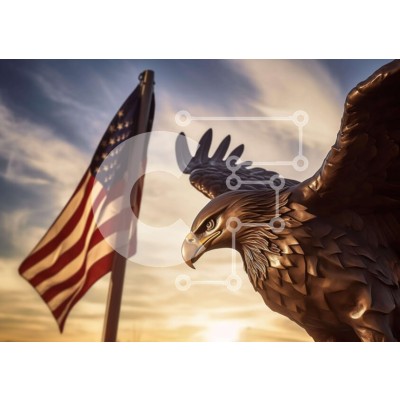 Υπάρχει δυνατότητα προσωποποίησης με δική σας φωτογραφία και προσαρμογής διαστάσεων κατόπιν παραγγελίας. Το συγεκεριμενο puzzle παρουσιαζει Η εικόνα απεικονίζει ένα άγαλμα ενός αετού με τα φτερά του απλωμένα μπροστά από την αμερικανική σημαία. Το άγαλμα είναι πιθανό να είναι αντιπροσωπευτικό του πατριωτισμού, καθώς αντιπροσωπεύει τη δύναμη και τη γενναιότητα όσων έχουν αγωνιστεί για την ελευθερία της χώρας τους. Ε