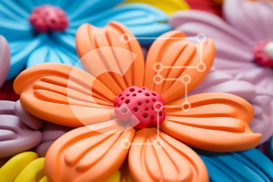 Υπάρχει δυνατότητα προσωποποίησης με δική σας φωτογραφία και προσαρμογής διαστάσεων κατόπιν παραγγελίας. Το συγεκεριμενο puzzle παρουσιαζει Αυτή η κοντινή εικόνα παρουσιάζει μια κυκλική διάταξη από πολύχρωμα πλαστικά λουλούδια. Κάθε λουλούδι έχει ξεχωριστό σχήμα, χρώμα και σχέδιο, με μερικά να μοιάζουν με παραδοσιακά πέταλα και άλλα να παρουσιάζουν πιο αφηρημένα μοτίβα. Τα λουλούδια είναι κατασκευασμένα από μαλακό