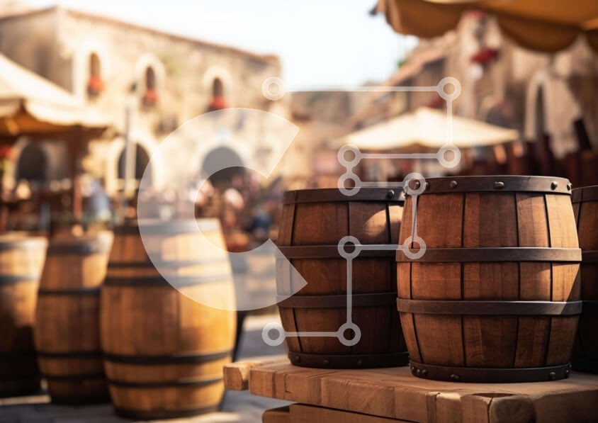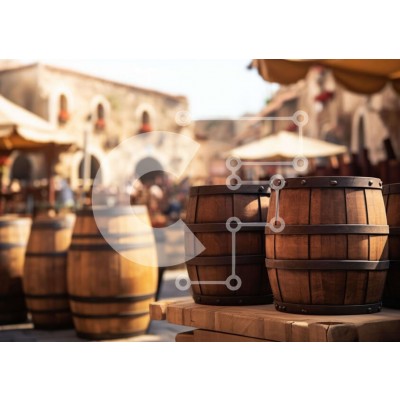 Υπάρχει δυνατότητα προσωποποίησης με δική σας φωτογραφία και προσαρμογής διαστάσεων κατόπιν παραγγελίας. Το συγεκεριμενο puzzle παρουσιαζει Η εικόνα παρουσιάζει πολλά ξύλινα βαρέλια που κάθονται σε ένα ξύλινο τραπέζι μπροστά από μια υπαίθρια αγορά. Πιθανότατα χρησιμοποιούνται για την αποθήκευση κρασιού, μπύρας ή άλλων ποτών, καθώς και ως διακοσμητικά στοιχεία για την περιοχή της αγοράς. Υπάρχουν επίσης αρκετές ομπ