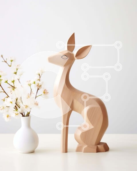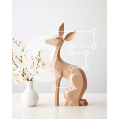 Υπάρχει δυνατότητα προσωποποίησης με δική σας φωτογραφία και προσαρμογής διαστάσεων κατόπιν παραγγελίας. Το συγεκεριμενο puzzle παρουσιαζει Αυτή η εικόνα παρουσιάζει ένα ξύλινο άγαλμα ελαφιού τοποθετημένο μπροστά από ένα άδειο βάζο γεμάτο με λευκά λουλούδια. Το άγαλμα φαίνεται να ακουμπάει στο τραπέζι. Υπάρχει δυνατότητα λουλουδένιας σύνθεσης, όπως κρίνα, που υπάρχει στην εικόνα. Ένα μοναδικό puzzle που συνδυάζει
