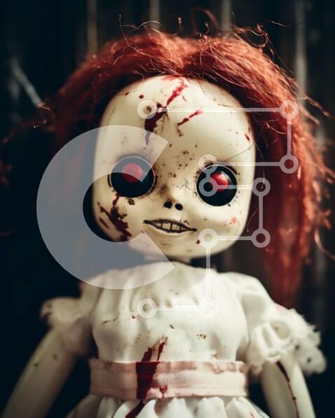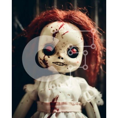 Υπάρχει δυνατότητα προσωποποίησης με δική σας φωτογραφία και προσαρμογής διαστάσεων κατόπιν παραγγελίας. Το συγεκεριμενο puzzle παρουσιαζει Αυτή η εικόνα παρουσιάζει μια κούκλα με κόκκινα μαλλιά και ματωμένα μάτια. Η κούκλα είναι ντυμένη στα λευκά, υποδηλώνοντας έναν τρομακτικό ή ανατριχιαστικό σκοπό. Κάθεται σε μια ξύλινη επιφάνεια, πιθανώς στηριγμένο σε κάτι. Ένα μοναδικό puzzle που συνδυάζει ποιότητα, αισθητικ