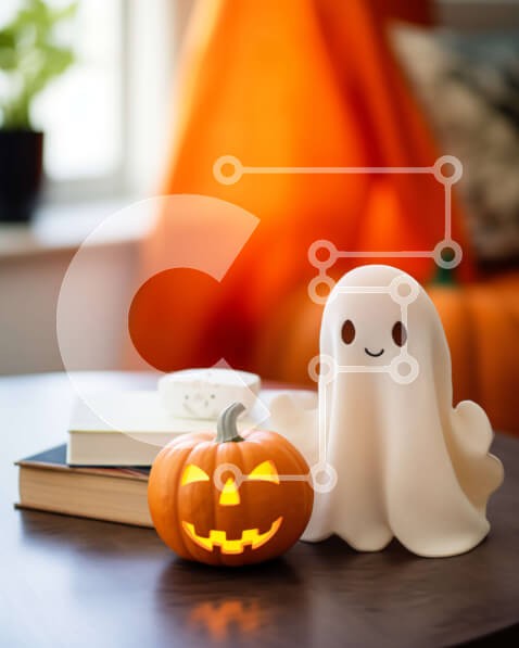 Υπάρχει δυνατότητα προσωποποίησης με δική σας φωτογραφία και προσαρμογής διαστάσεων κατόπιν παραγγελίας. Το συγεκεριμενο puzzle παρουσιαζει Αυτή η εικόνα παρουσιάζει ένα ξύλινο τραπέζι στολισμένο με δύο κολοκύθες και ένα πορτοκαλί ειδώλιο φαντασμάτων. Υπάρχει επίσης ένα βιβλίο στο τραπέζι, προσθέτοντας στη ζεστή και φθινοπωρινή ατμόσφαιρα. Γύρω από το τραπέζι υπάρχουν πολλά βιβλία, που δίνουν την εντύπωση μελέτης