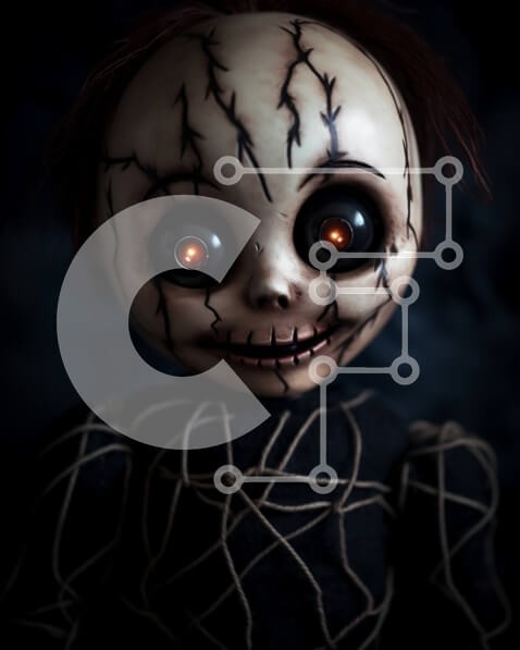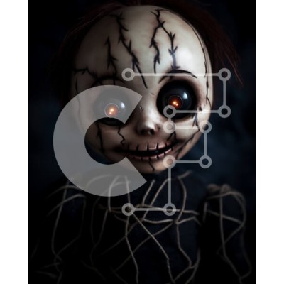 Υπάρχει δυνατότητα προσωποποίησης με δική σας φωτογραφία και προσαρμογής διαστάσεων κατόπιν παραγγελίας. Το συγεκεριμενο puzzle παρουσιαζει Αυτή η εικόνα παρουσιάζει μια ανατριχιαστική κούκλα με κόκκινα μάτια και μαύρα ρούχα. Η κούκλα απεικονίζεται καθισμένη στο σκοτάδι, κάτι που προσθέτει στην απόκοσμη και ανησυχητική εμφάνισή της. Μπορεί να χρησιμοποιηθεί ως στήριγμα ή να προορίζεται να τρομάξει τους ανθρώπους μ