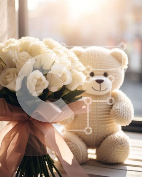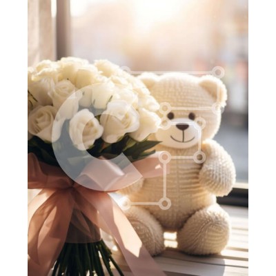 Υπάρχει δυνατότητα προσωποποίησης με δική σας φωτογραφία και προσαρμογής διαστάσεων κατόπιν παραγγελίας. Το συγεκεριμενο puzzle παρουσιαζει Αυτή η εικόνα παρουσιάζει ένα αρκουδάκι που κάθεται δίπλα σε μια διάταξη από λευκά τριαντάφυλλα σε ένα περβάζι παραθύρου. Η αρκούδα φαίνεται από διαφορετικές οπτικές γωνίες και τα λουλούδια υποδηλώνουν ότι αγοράστηκαν για γενέθλια ή άλλη ειδική περίσταση. Ένα μοναδικό puzzle