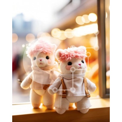 Υπάρχει δυνατότητα προσωποποίησης με δική σας φωτογραφία και προσαρμογής διαστάσεων κατόπιν παραγγελίας. Το συγεκεριμενο puzzle παρουσιαζει Αυτή η εικόνα παρουσιάζει δύο λούτρινα ζωάκια με ροζ μαλλιά να κάθονται σε ένα περβάζι παραθύρου. Τοποθετούνται στο κέντρο της εικόνας, με ένα από αυτά να γέρνει ελαφρά προς την κάμερα. Το δωμάτιο είναι γεμάτο με άλλα μικροαντικείμενα, όπως βιβλία και παιχνίδια, δημιουργώντας