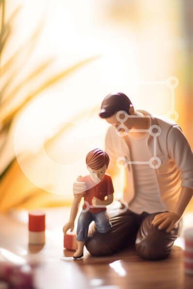 Υπάρχει δυνατότητα προσωποποίησης με δική σας φωτογραφία και προσαρμογής διαστάσεων κατόπιν παραγγελίας. Το συγεκεριμενο puzzle παρουσιαζει Η εικόνα απεικονίζει ένα ειδώλιο πατέρα και γιου να κάθονται στο πάτωμα. Το ειδώλιο φαίνεται να παίζει με το παιδί, κάτι που μπορεί να υποδηλώνει ότι ασχολούνται με κάποια μορφή παιχνιδιού ή ψυχαγωγίας. Υπάρχει επίσης μια διάταξη από φυτά σε γλάστρες κοντά στο ειδώλιο, υποδηλώ