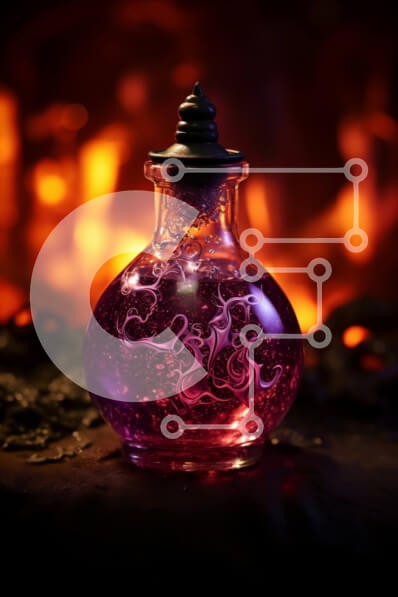 | Όνομα Προϊόντος | Intra Συλλεκτικό Ξύλινο Παζλ Plywood 4mm - Σαγηνευτική εικόνα μωβ υγρού σε ένα μπουκάλι με πύρινες φλόγες στο φόντο Σε Ξύλινο Κουτί - Διαστάσεις Puzzle: 10x10 cm – 25 κομμάτια |