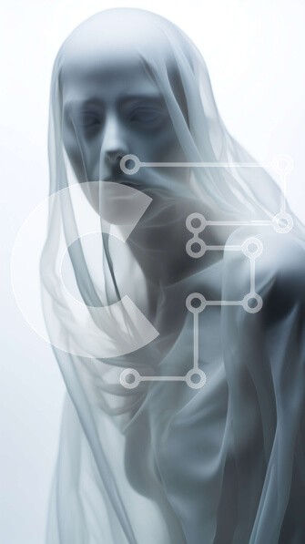 Υπάρχει δυνατότητα προσωποποίησης με δική σας φωτογραφία και προσαρμογής διαστάσεων κατόπιν παραγγελίας. Το συγεκεριμενο puzzle παρουσιαζει Η εικόνα παρουσιάζει μια στυλιζαρισμένη φιγούρα τυλιγμένη σε ημιδιαφανές ύφασμα, δημιουργώντας ένα αιθέριο και αινιγματικό αποτέλεσμα. Η έκφραση του μοντέλου είναι γαλήνια αλλά και ενδοσκοπική, προσθέτοντας στη συνολική διάθεση μυστηρίου. Το απαλό, διάχυτο φως ενισχύει τη λεπτ