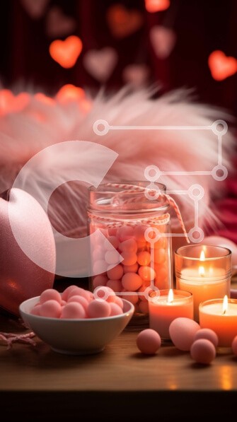 Υπάρχει δυνατότητα προσωποποίησης με δική σας φωτογραφία και προσαρμογής διαστάσεων κατόπιν παραγγελίας. Το συγεκεριμενο puzzle παρουσιαζει Αυτή η εικόνα παρουσιάζει ένα σετ τραπεζιού με ένα ροζ μαξιλάρι σε σχήμα καρδιάς ως κεντρικό στοιχείο. Το τραπέζι είναι στολισμένο με πολλά ροζ κεριά και ένα βάζο με ροζ ζαχαρωτά. Το φόντο είναι ένα σκούρο κόκκινο χρώμα, δημιουργώντας μια ρομαντική και οικεία ατμόσφαιρα. Ένα