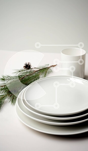 Υπάρχει δυνατότητα προσωποποίησης με δική σας φωτογραφία και προσαρμογής διαστάσεων κατόπιν παραγγελίας. Το συγεκεριμενο puzzle παρουσιαζει Αυτή η εικόνα παρουσιάζει ένα σύνολο τεσσάρων λευκών πιάτων, στοιβαγμένων το ένα πάνω στο άλλο. Ένα κλαδί πεύκου περιλαμβάνεται στη σύνθεση, υποδηλώνοντας ότι μπορεί να χρησιμοποιηθεί ως διακοσμητικό στοιχείο ή για να ενισχύσει την επιφάνεια του τραπεζιού. Επιπλέον, δύο φλιτζά