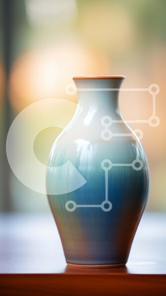 Υπάρχει δυνατότητα προσωποποίησης με δική σας φωτογραφία και προσαρμογής διαστάσεων κατόπιν παραγγελίας. Το συγεκεριμενο puzzle παρουσιαζει Αυτή η εικόνα παρουσιάζει ένα λευκό, μπλε και πορτοκαλί βάζο τοποθετημένο σε ένα ανοιχτό ξύλινο τραπέζι. Το βάζο είναι το εστιακό σημείο της εικόνας, με ένα θολό φόντο που υποδηλώνει ότι μπορεί να είναι σε εσωτερικό ή εξωτερικό χώρο. Ο συνδυασμός των χρωμάτων προσθέτει μια πιν