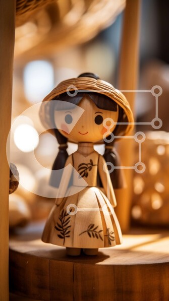 Υπάρχει δυνατότητα προσωποποίησης με δική σας φωτογραφία και προσαρμογής διαστάσεων κατόπιν παραγγελίας. Το συγεκεριμενο puzzle παρουσιαζει Αυτή η εικόνα παρουσιάζει μια μικρή ξύλινη κούκλα που φορά ένα ψάθινο καπέλο και στέκεται σε μια ξύλινη επιφάνεια. Η κούκλα έχει ουδέτερη έκφραση και είναι ντυμένη με ένα απλό φόρεμα με σχέδιο. Το φόντο αποτελείται από διάφορα καλάθια και άλλα ξύλινα αντικείμενα. Ένα μοναδικό