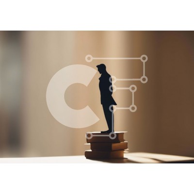 Υπάρχει δυνατότητα προσωποποίησης με δική σας φωτογραφία και προσαρμογής διαστάσεων κατόπιν παραγγελίας. Το συγεκεριμενο puzzle παρουσιαζει Αυτή η εικόνα παρουσιάζει μια σιλουέτα ενός άνδρα που φορά ένα κοστούμι, που στέκεται περήφανα πάνω από μια στοίβα βιβλίων. Το φόντο είναι θολό, με το φως να λάμπει μέσα από ένα παράθυρο, προσθέτοντας μια πινελιά ίντριγκας στη σύνθεση. Ένα μοναδικό puzzle που συνδυάζει ποιότη