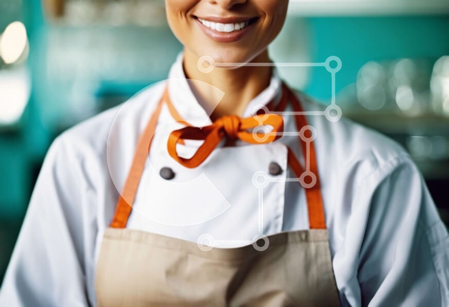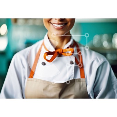 Υπάρχει δυνατότητα προσωποποίησης με δική σας φωτογραφία και προσαρμογής διαστάσεων κατόπιν παραγγελίας. Το συγεκεριμενο puzzle παρουσιαζει Αυτή η εικόνα δείχνει μια χαμογελαστή γυναίκα σεφ σε μια επαγγελματική κουζίνα. Φοράει μια φόρμα και ένα πορτοκαλί παπιγιόν, υποδεικνύοντας τον ρόλο της ως σεφ. Σε κοντινή απόσταση φαίνονται σκεύη και ποτήρια, υποδηλώνοντας ότι μπορεί να ετοιμάζει φαγητό για καλεσμένους ή πελά