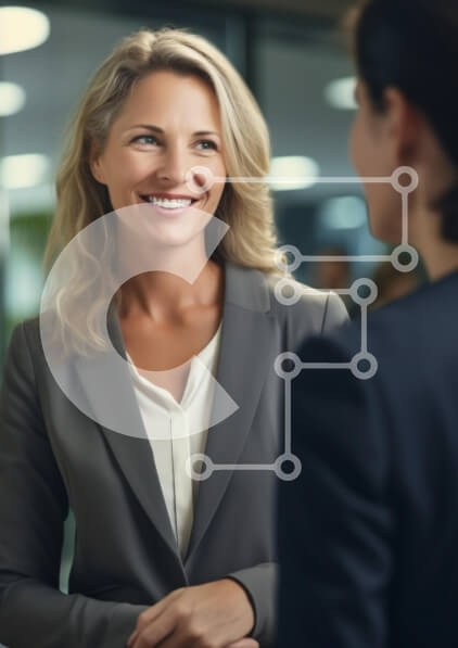 Υπάρχει δυνατότητα προσωποποίησης με δική σας φωτογραφία και προσαρμογής διαστάσεων κατόπιν παραγγελίας. Το συγεκεριμενο puzzle παρουσιαζει Η εικόνα δείχνει μια γυναίκα με επαγγελματικό ντύσιμο να χαμογελά και να συνομιλεί. Έχει μακριά, σπαστά ξανθά μαλλιά και φοράει ένα γκρι κοστούμι πάνω από μια λευκή μπλούζα. Η ρύθμιση φαίνεται να είναι ένα μοντέρνο περιβάλλον γραφείου, με θολές φιγούρες στο φόντο που υποδηλώνο