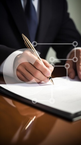 Υπάρχει δυνατότητα προσωποποίησης με δική σας φωτογραφία και προσαρμογής διαστάσεων κατόπιν παραγγελίας. Το συγεκεριμενο puzzle παρουσιαζει Μια κοντινή όψη ενός χεριού ενός άνδρα που κρατά ένα πολυτελές χρυσό στυλό, έτοιμο να υπογράψει ένα έγγραφο σε ένα κομψό ξύλινο τραπέζι. Ο άνδρας είναι ντυμένος με επίσημο μαύρο κοστούμι και λευκό πουκάμισο, με επίκεντρο τη γραφή. Το έγγραφο φαίνεται κενό, αλλά η σκηνή μεταδίδ