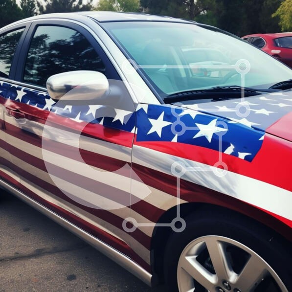 | Όνομα Προϊόντος | Intra Συλλεκτικό Ξύλινο Παζλ Plywood 4mm - Κόκκινο, λευκό και μπλε αυτοκίνητο με αμερικανική σημαία στο χώρο στάθμευσης Σε Ξύλινο Κουτί - Διαστάσεις Puzzle: 10x10 cm – 25 κομμάτια |