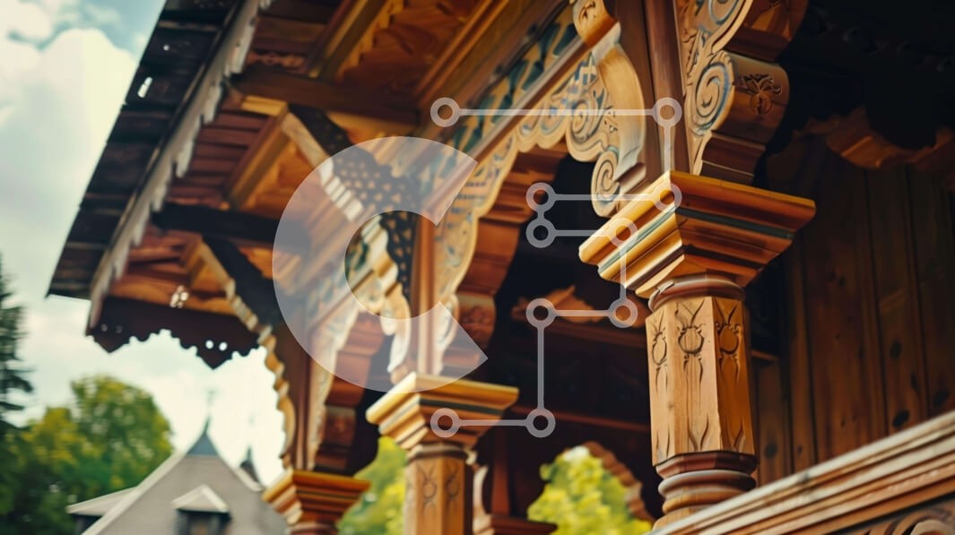 Υπάρχει δυνατότητα προσωποποίησης με δική σας φωτογραφία και προσαρμογής διαστάσεων κατόπιν παραγγελίας. Το συγεκεριμενο puzzle παρουσιαζει Η εικόνα παρουσιάζει ένα περίτεχνο ξύλινο κτίριο με κολώνες, κολώνες και διακοσμητικά στοιχεία. Ένα κλασικό ρολόι εμφανίζεται σε περίοπτη θέση στο πλάι του κτιρίου, υποδηλώνοντας τη χρήση του για σκοπούς μέτρησης της ώρας. Το φόντο διαθέτει πολλά δέντρα, που παραπέμπουν σε ένα