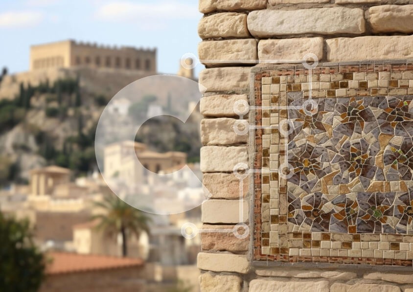 Υπάρχει δυνατότητα προσωποποίησης με δική σας φωτογραφία και προσαρμογής διαστάσεων κατόπιν παραγγελίας. Το συγεκεριμενο puzzle παρουσιαζει Η εικόνα παρουσιάζει έναν τοίχο με πλακάκια που κρέμεται στο πρώτο πλάνο, ο οποίος είναι διακοσμημένος με ένα περίπλοκο σχέδιο από ψηφιδωτά πλακάκια. Αρκετοί φοίνικες βρίσκονται κοντά στον τοίχο, υποδηλώνοντας ότι μπορεί να αποτελούν μέρος του τοπίου του κτιρίου. Μια πόλη μπορ