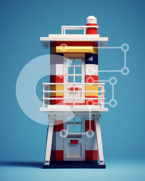 Υπάρχει δυνατότητα προσωποποίησης με δική σας φωτογραφία και προσαρμογής διαστάσεων κατόπιν παραγγελίας. Το συγεκεριμενο puzzle παρουσιαζει Η εικόνα παρουσιάζει έναν φάρο παιχνιδιού από πολύχρωμα τουβλάκια LEGO, τοποθετημένο σε μπλε φόντο. Ο φάρος φαίνεται από πολλές γωνίες και έχει δύο παράθυρα στην μπροστινή πρόσοψη, υποδεικνύοντας την πιθανή χρήση του ως παρατηρητήριο ή πύργο παρατήρησης. Ένα μοναδικό puzzle π